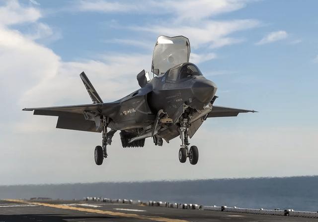 相比之下,美国现役最先进的两栖攻击舰“美利坚”级,其航空打击核心依赖的是F-35B垂直/短距起降战机。F-35B固然先进,但为了满足垂直起降需求,其在航程、载弹量(尤其是内油内弹状态)方面做出了牺牲,持续打击能力和作战半径存在天然局限。